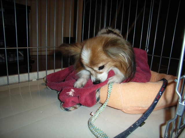 高齢になって突然家から放り出されてセンター → 病院 → ショートステイ → 仮宿 と辛く恐ろしい経験に不安で堪らないのでしょう。 サークルの中でタオルケットをひたすらチュバチュバ。 胸が詰まりました。