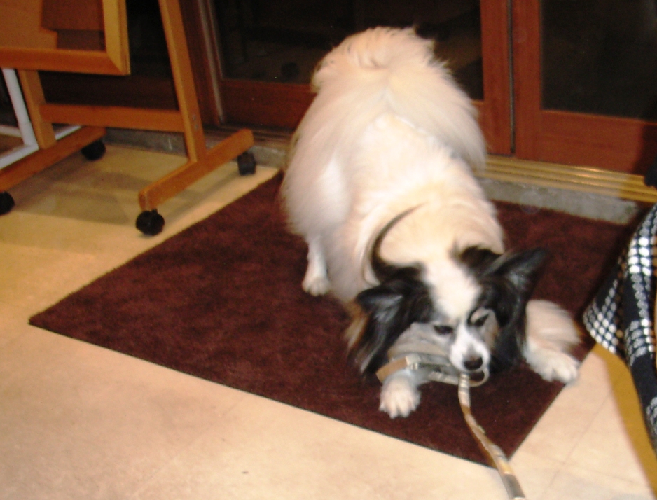 ご迷惑なので、出て行って彼のマズルを掴もうとすると「止めてください」と前足で阻止です。