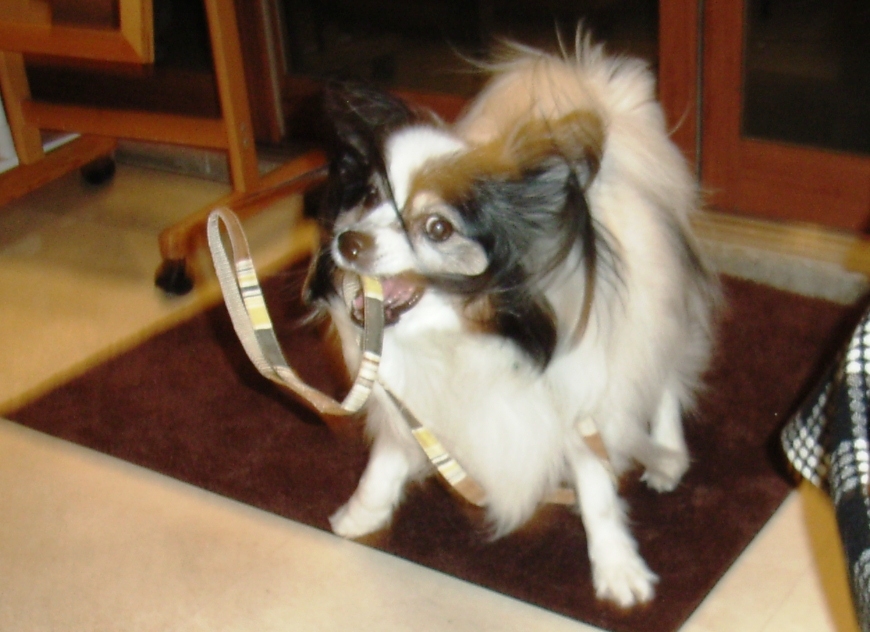 お散歩行きたいんです。 でも、イヤなんですよね、ハーネス。