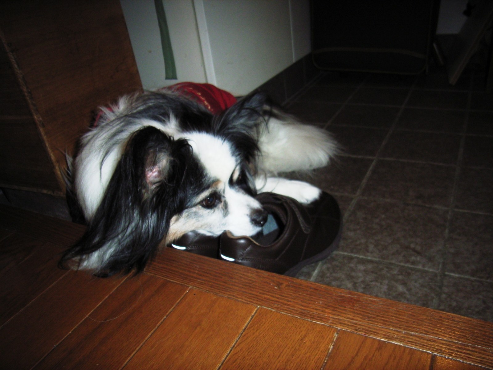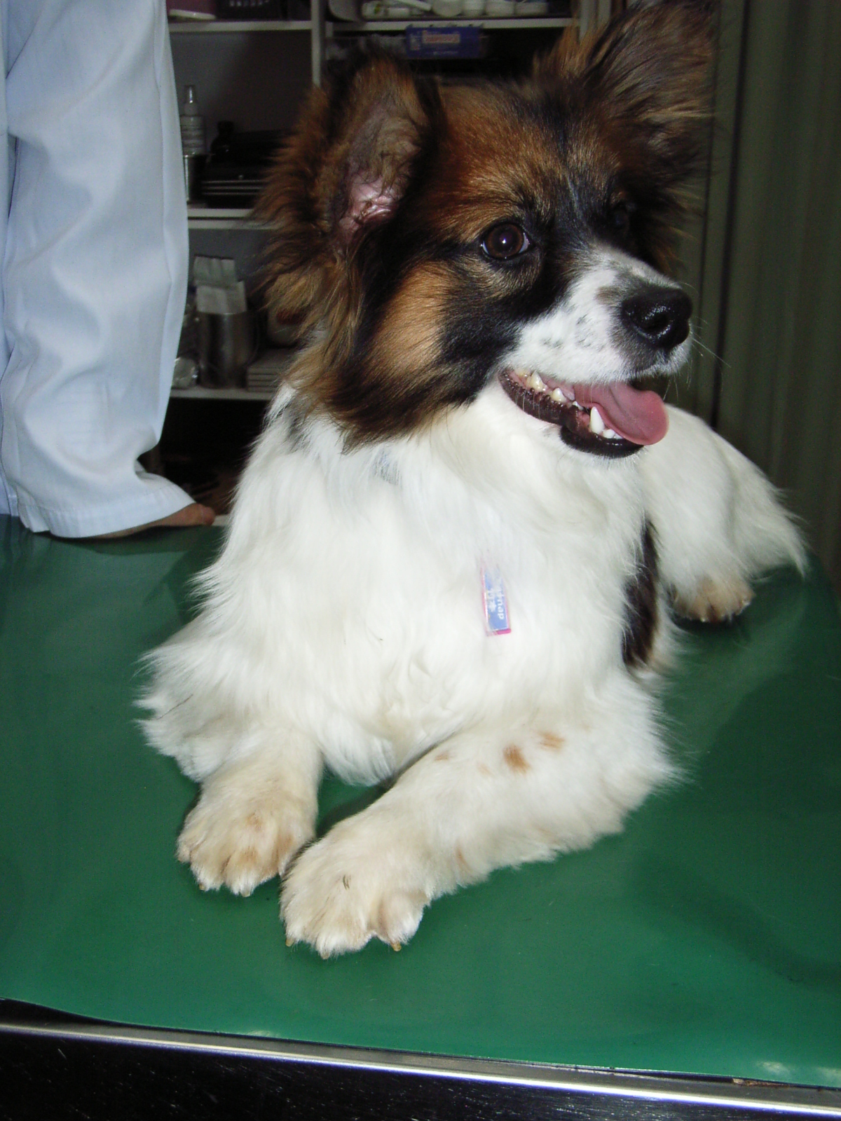 夕方到着したF動物病院でやっとご対面のパピヨン君。 パピ・ヨ・・ン?
