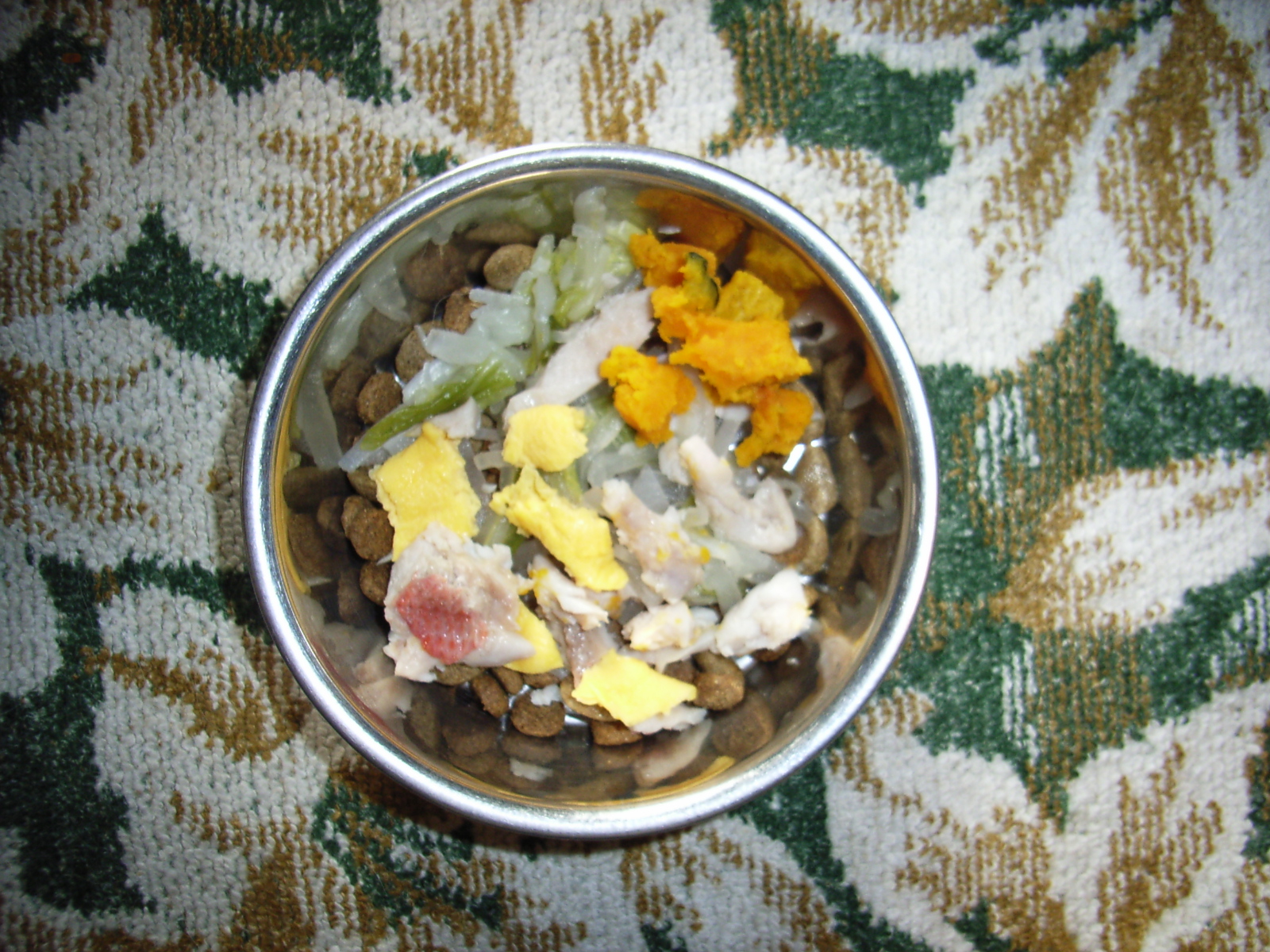 ロビンは野菜好きですが、そこは犬。 野菜ばかりでは泣きます。 生野菜も食べません。