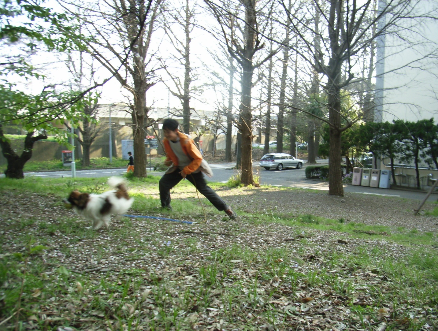 途中立ち寄りのいつもの公園で楽しく一暴れ。 わんぱく坊主OBのロビンが挑んでいるのは