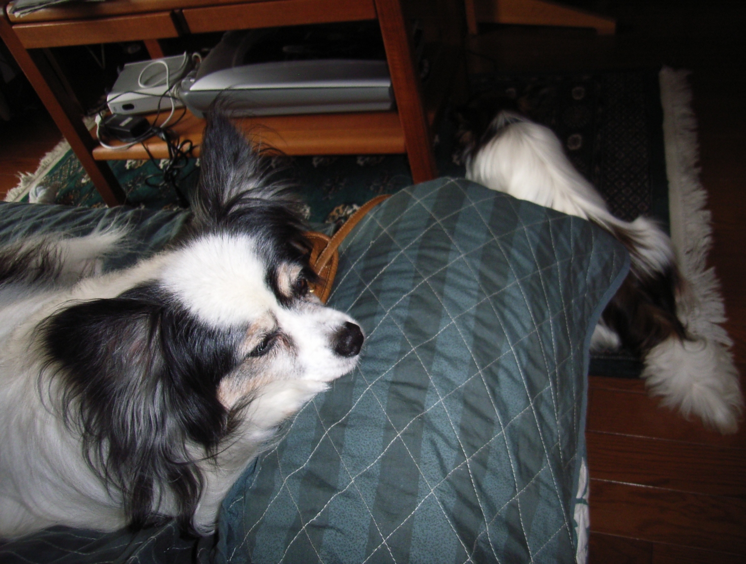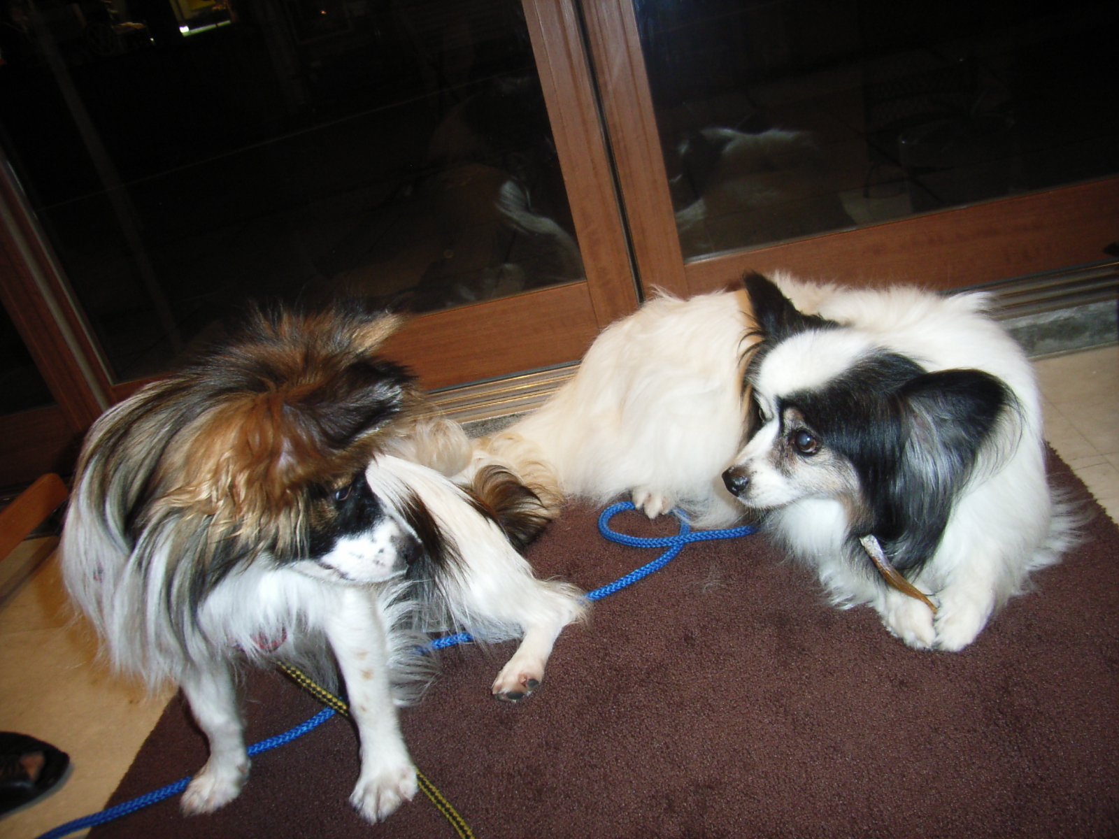 ワンズはとっても退屈。 まあ、シニアのロビンはゆったり過ごしてますが・・・。