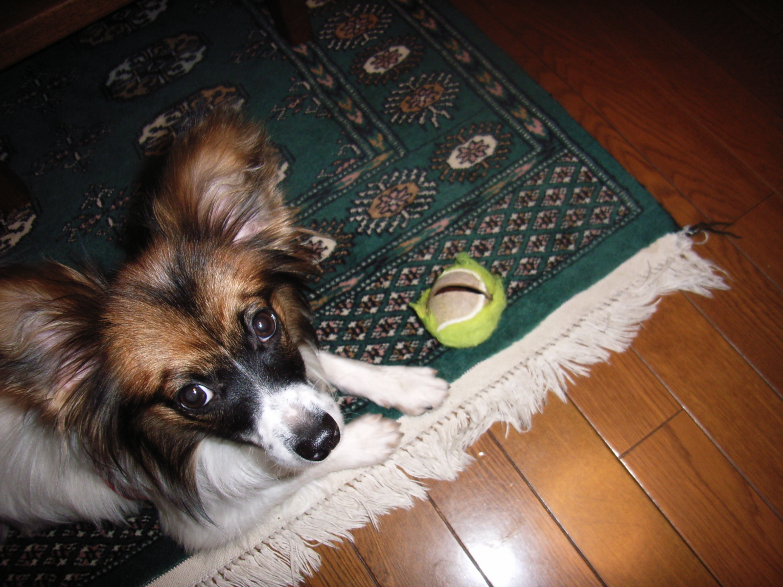 仕方がない、新しいボールをソファめがけて投げました。 咥えて来ては「もっとー