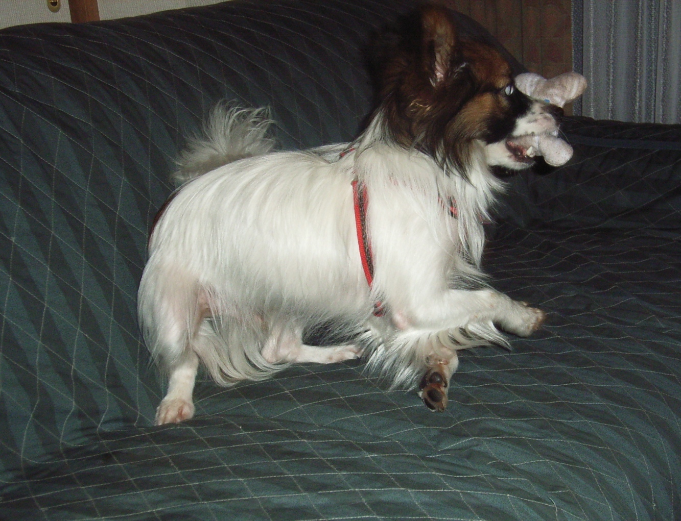 我慢強く、いい子だったトビッチには帰宅後大きな子牛のアバラ骨をご褒美に。