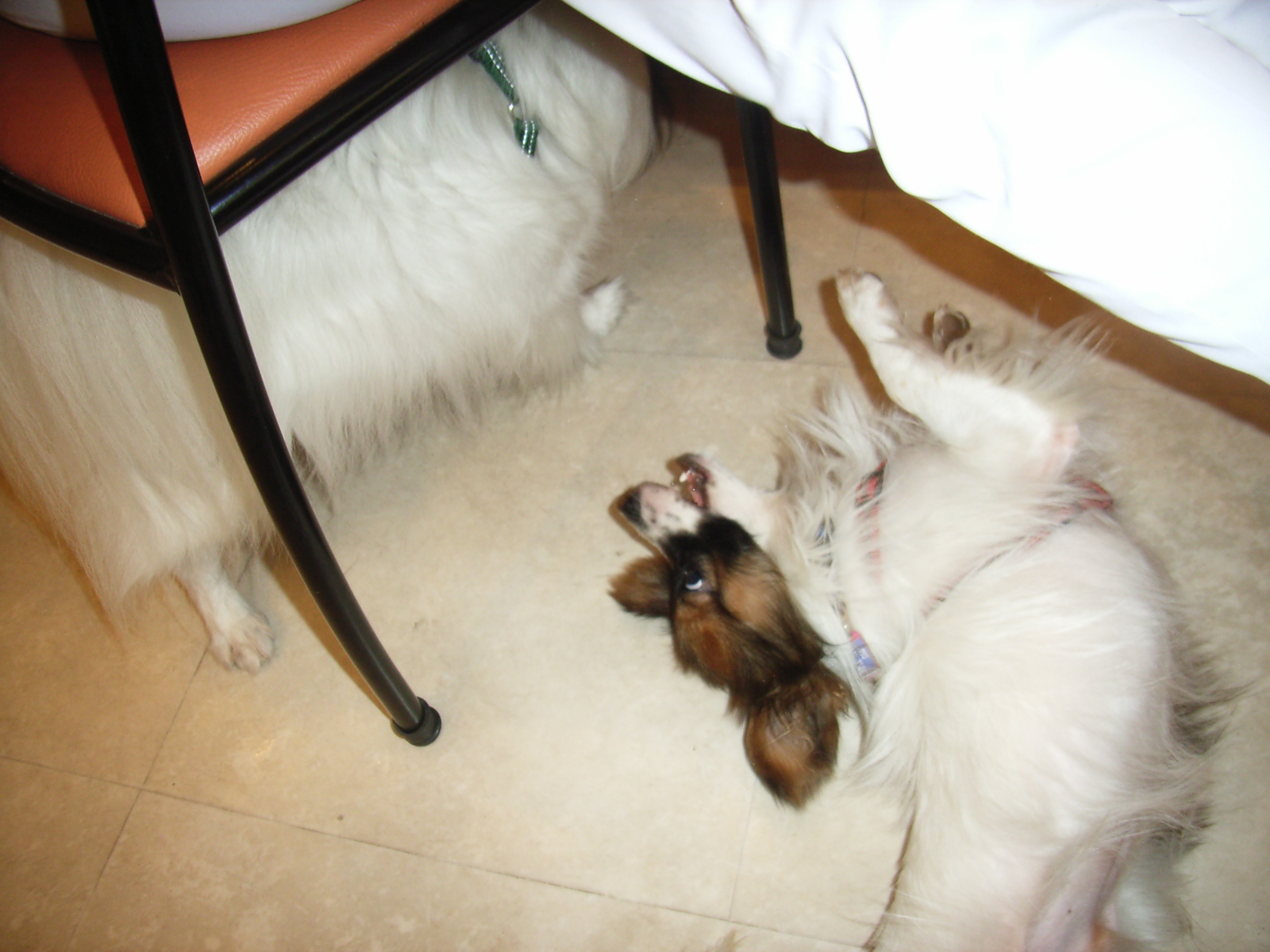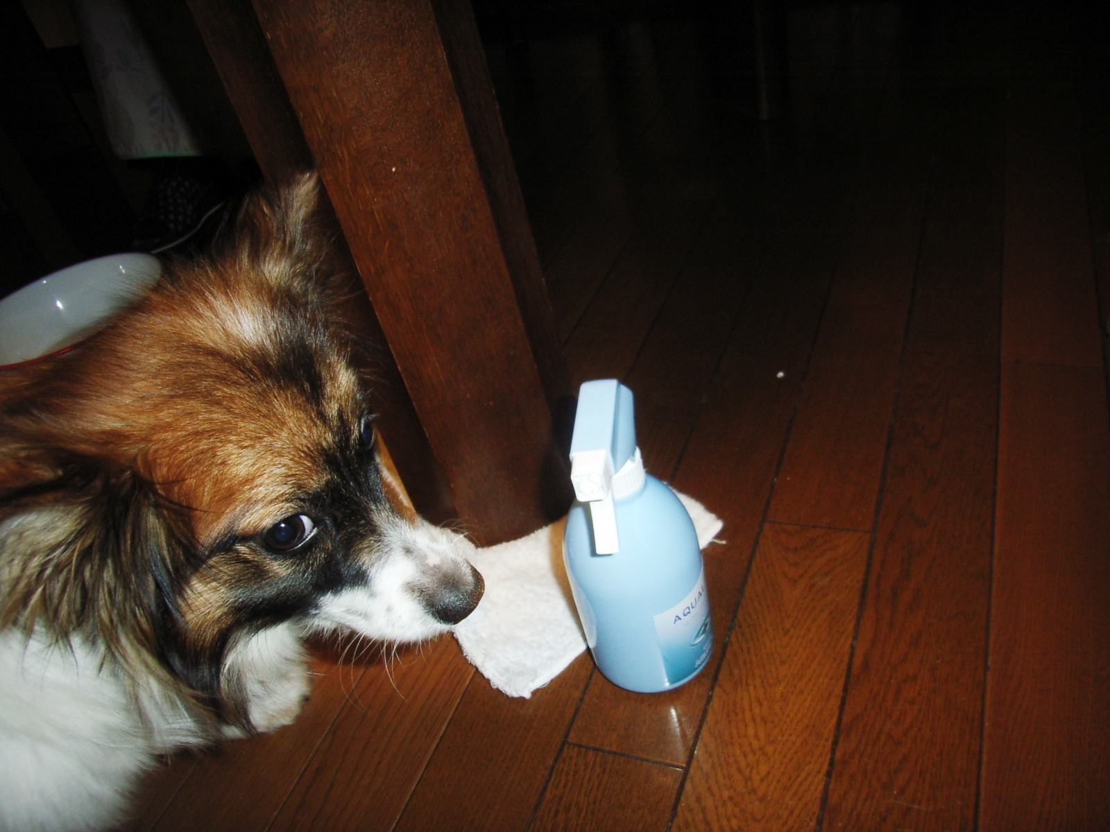 脚でテーブルを廻りながら探し続ける。 見た所ワンが欲しがる物など何も無い。