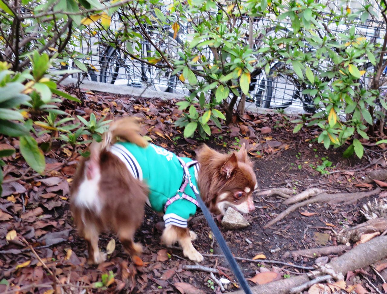外の物音に素早く気付いてワンワンワン〜と音のする方へ。