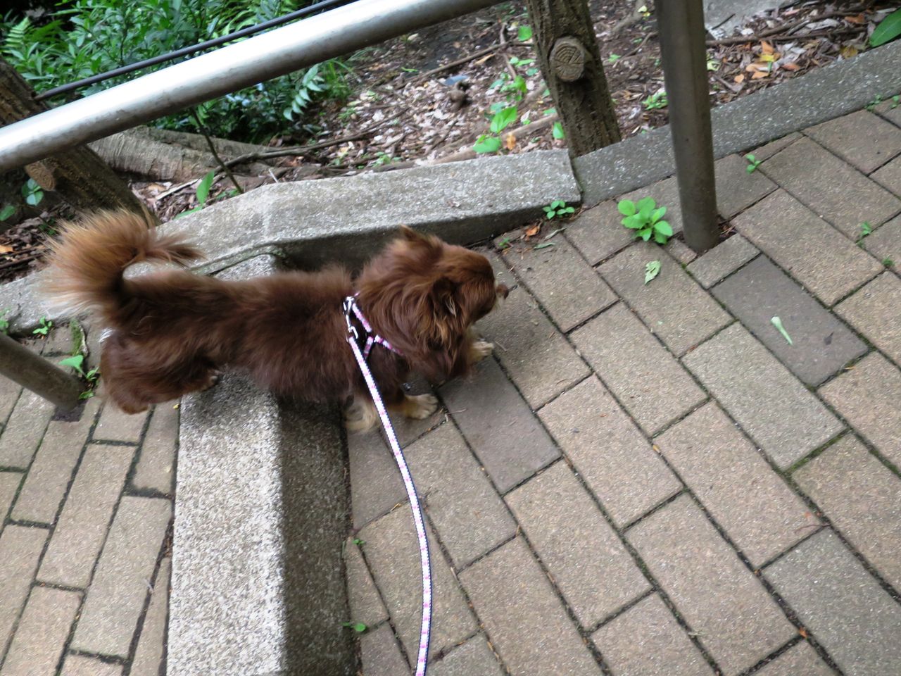 クリン、公園の階段はトットコ越えます。