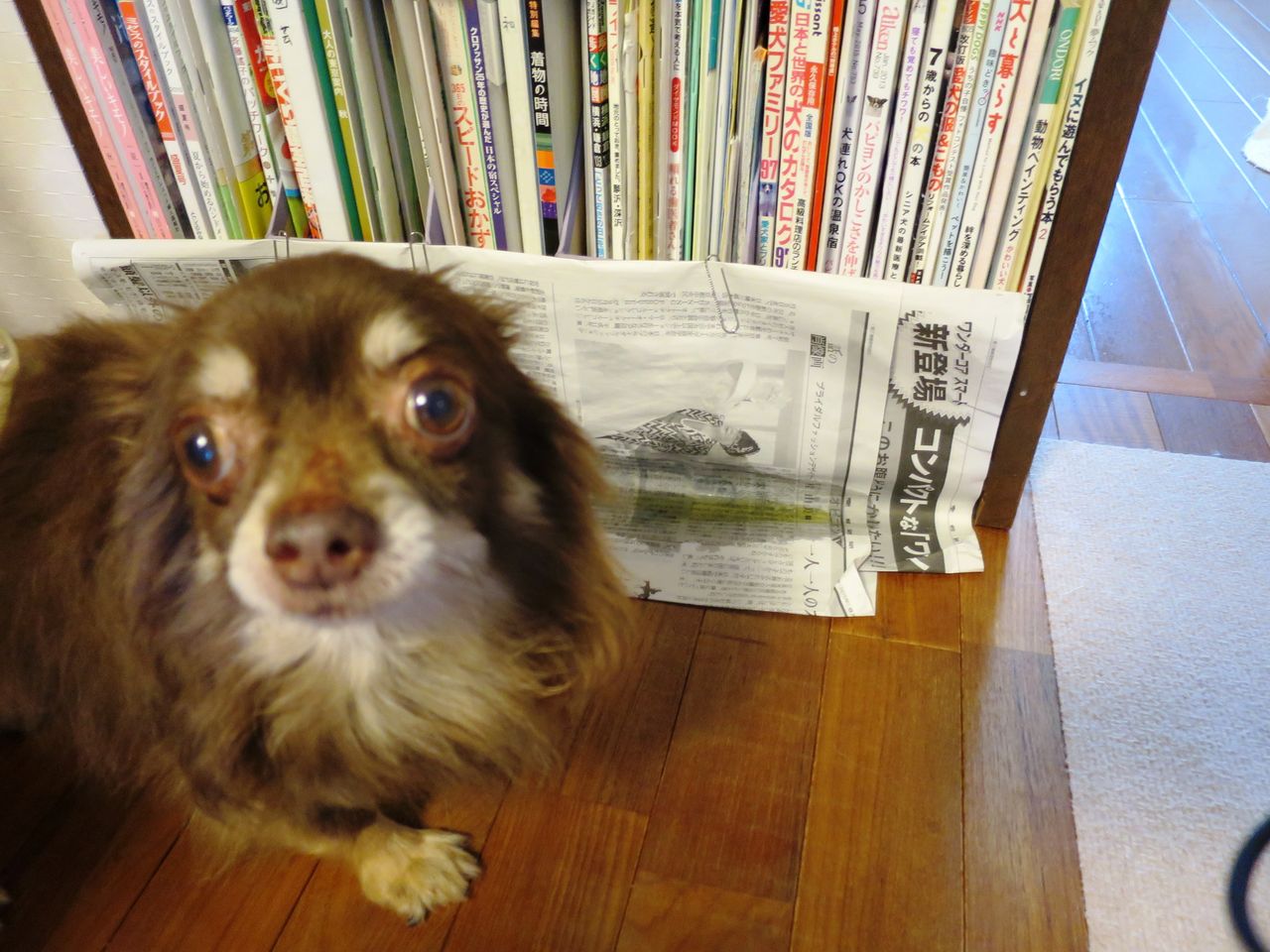 ペットシート仕様で新たなトイレ設置にしたくないので新聞紙。