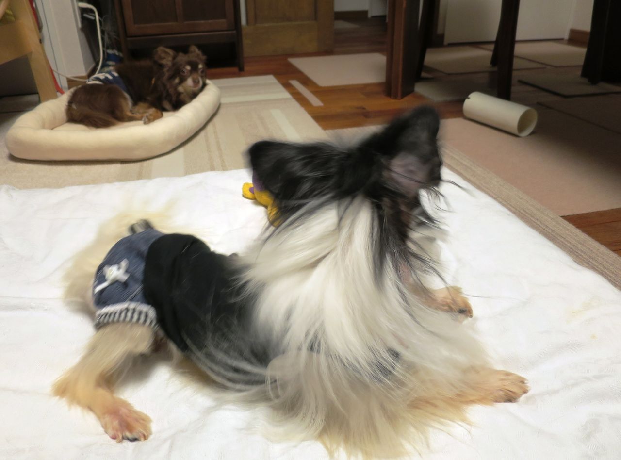 到着早々の新入りさんなのに、オムツ装着で4頭もの
