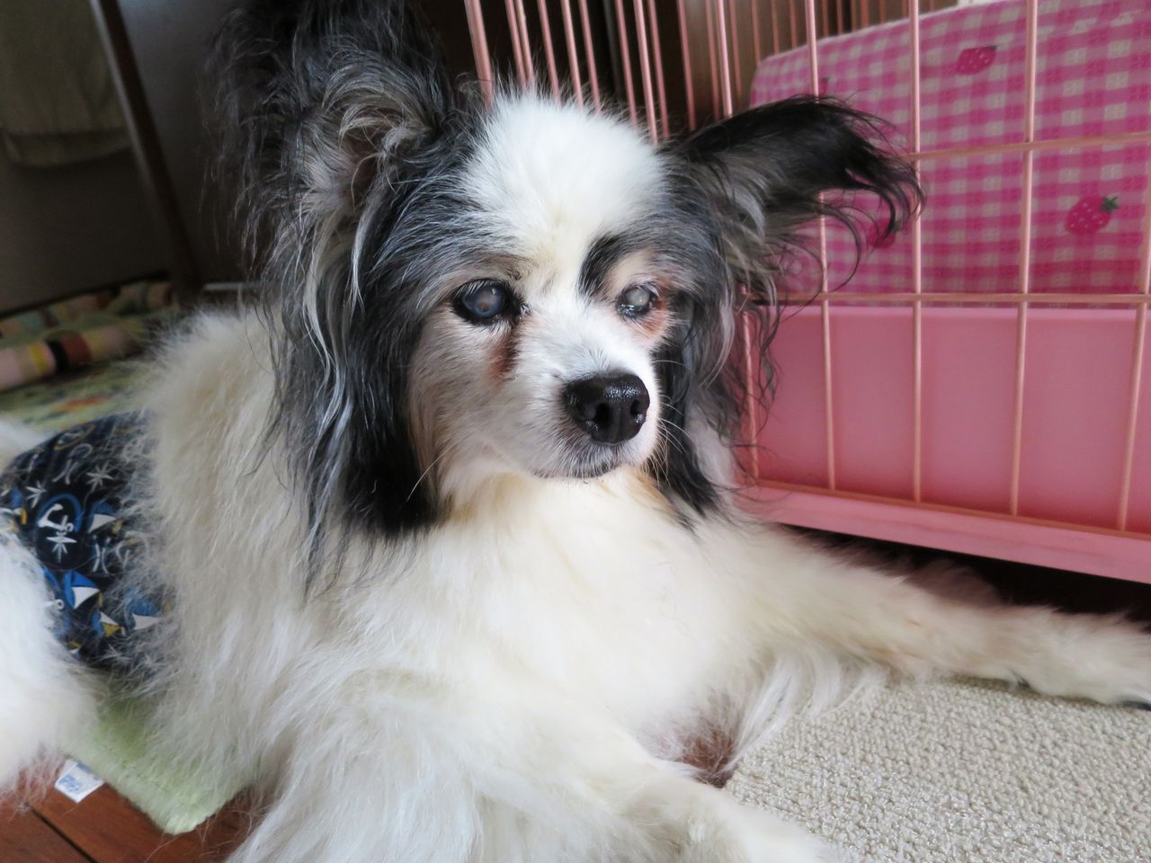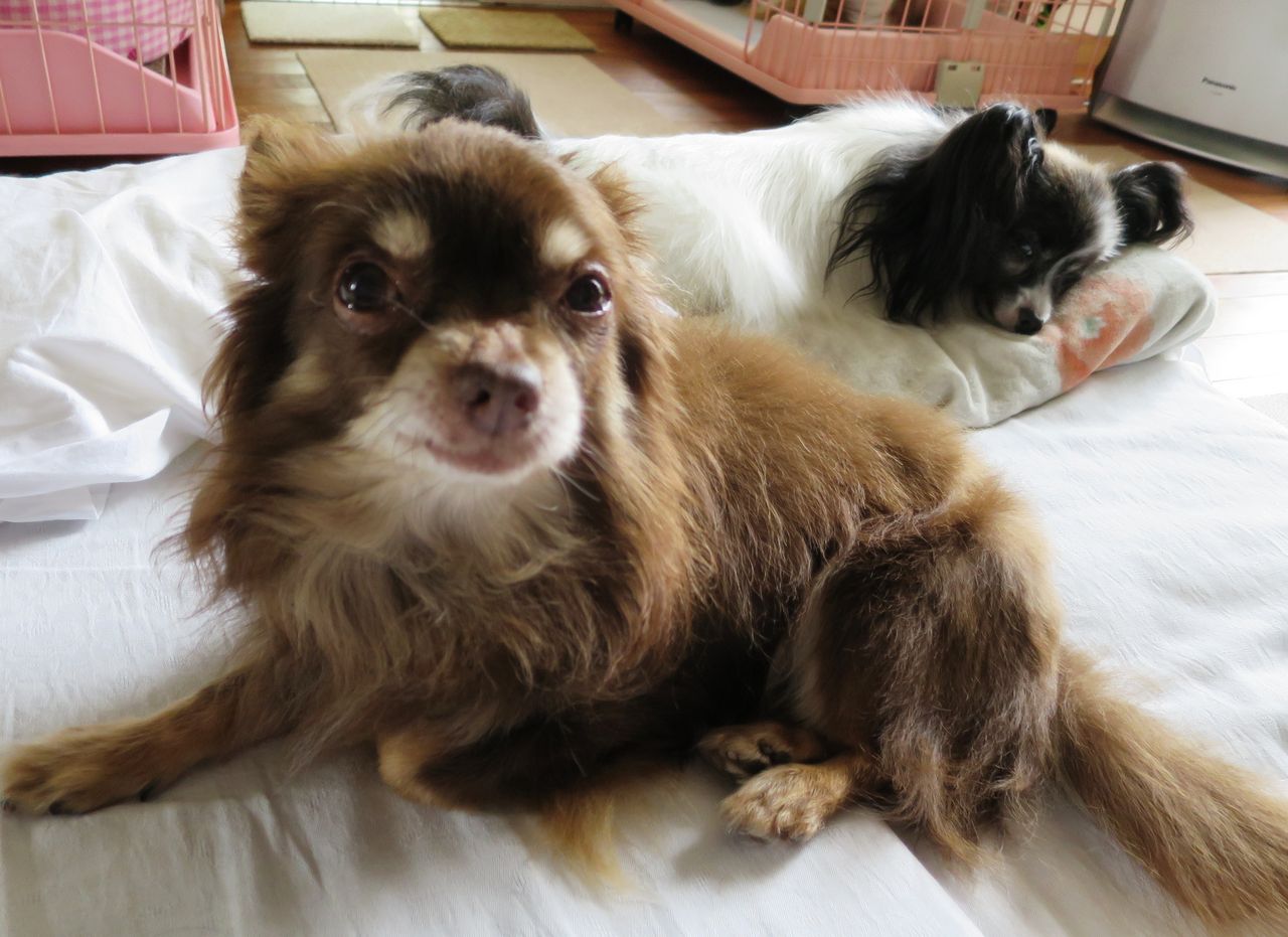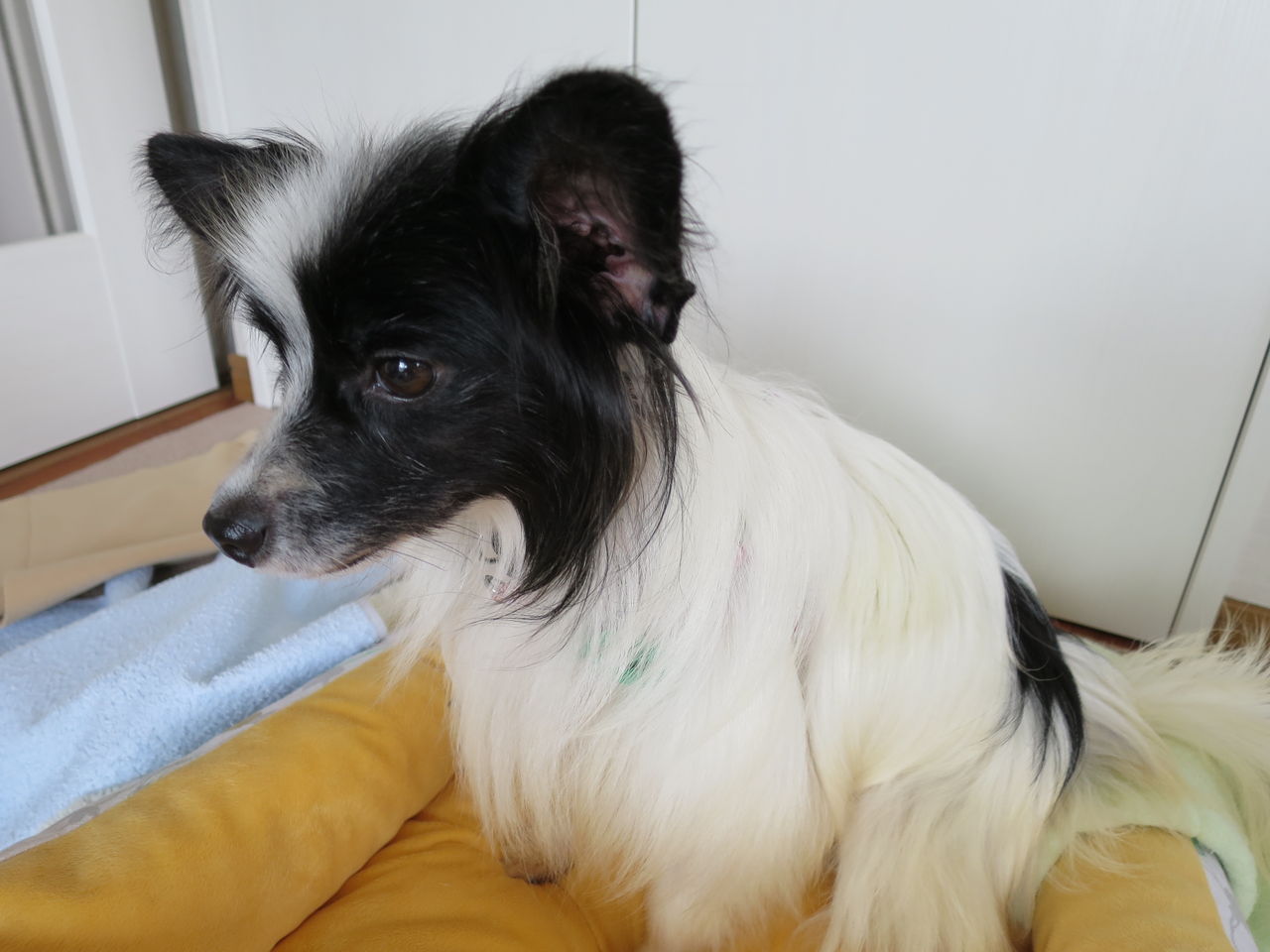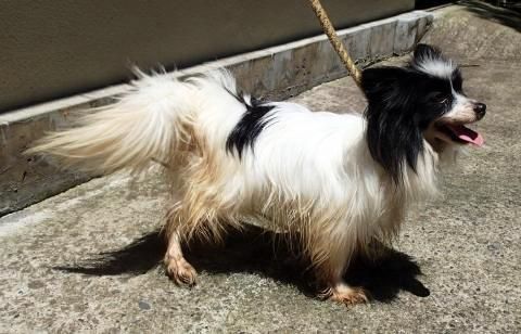 パピヨンの繊細なコートがシッコ焼けで、パサパサな姿