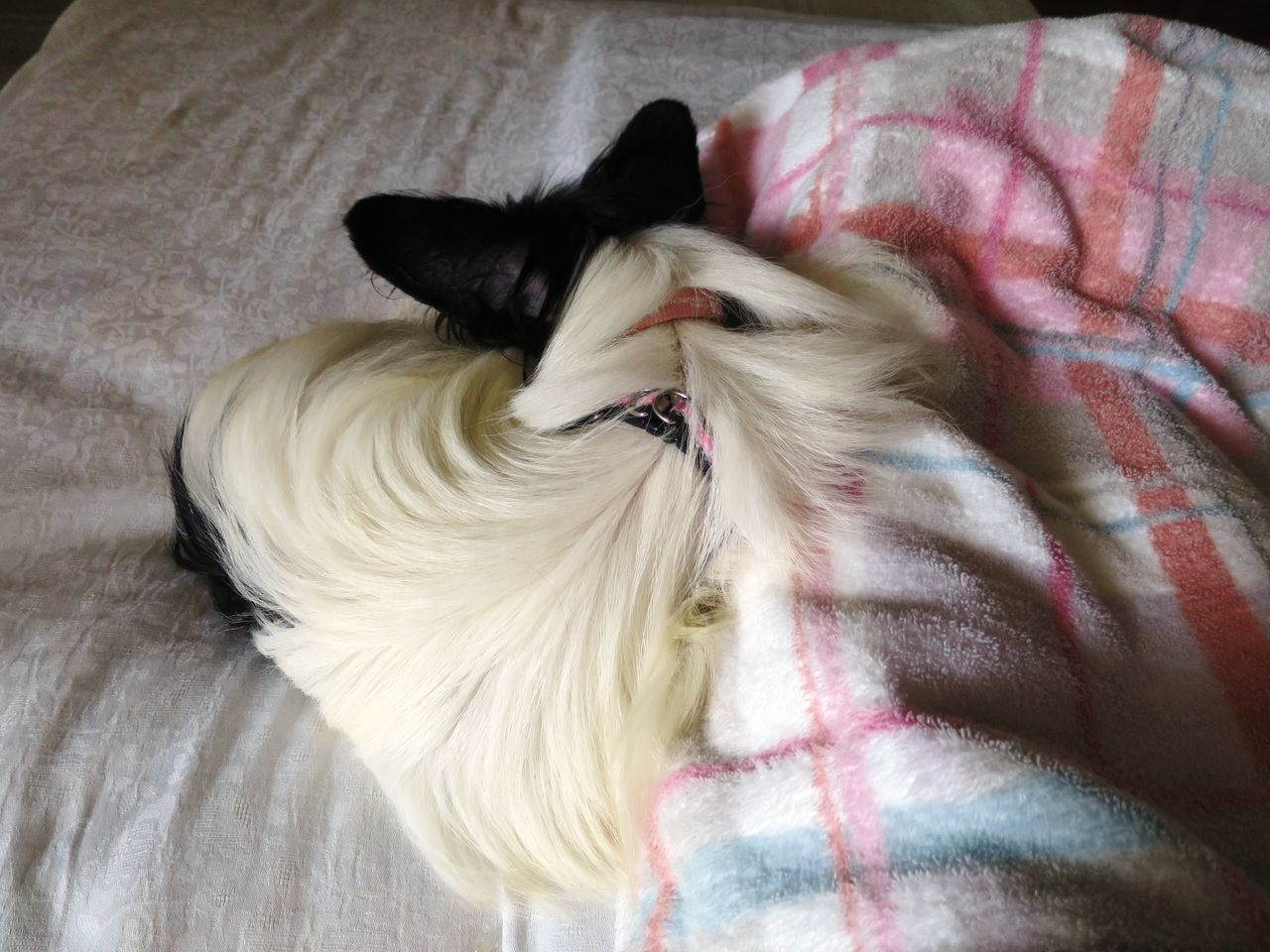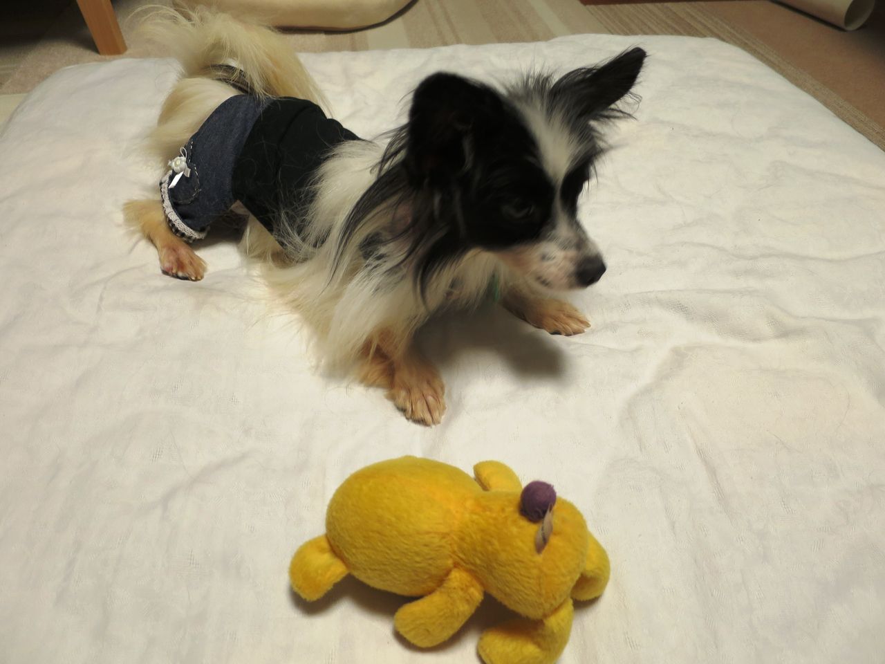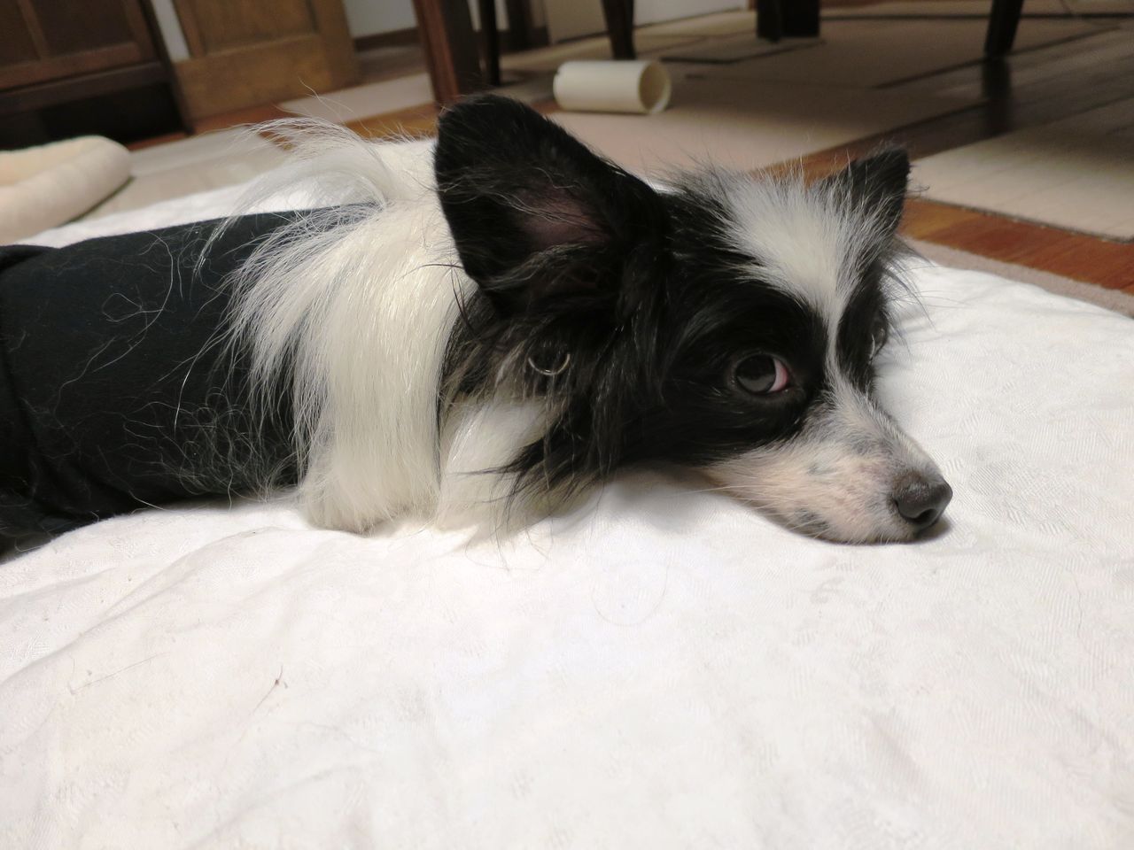 パピヨンの繊細なコートがシッコ焼けで、パサパサな姿