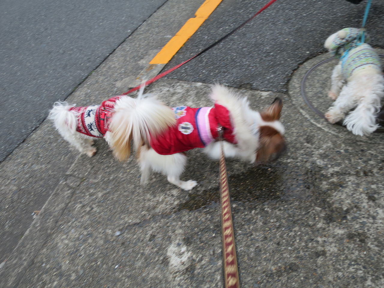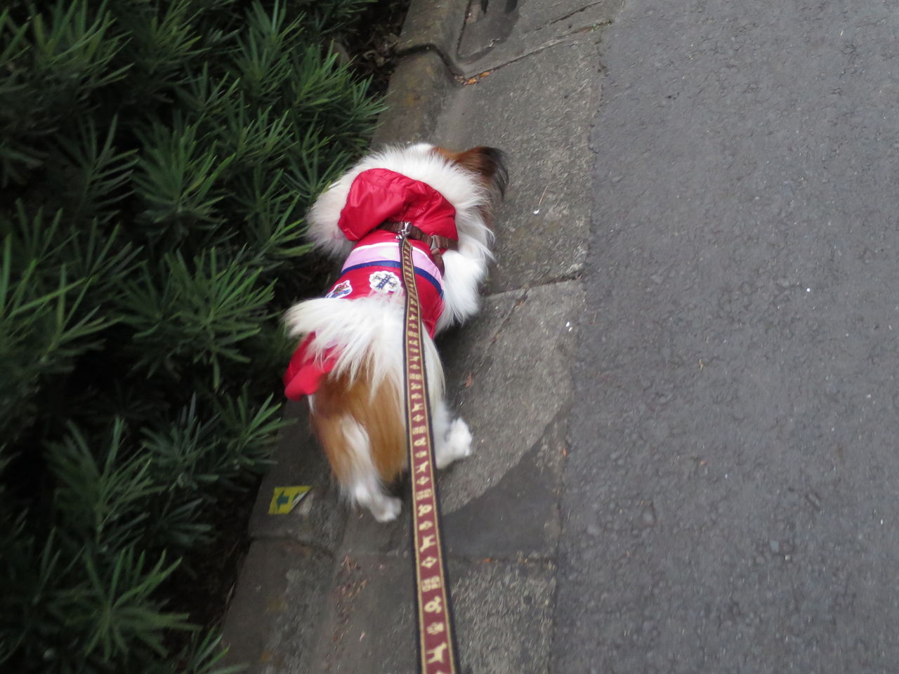 匂い嗅ぎ少々、マーキングも少々。 ウンPはすれば1回。 今朝はしなかった。