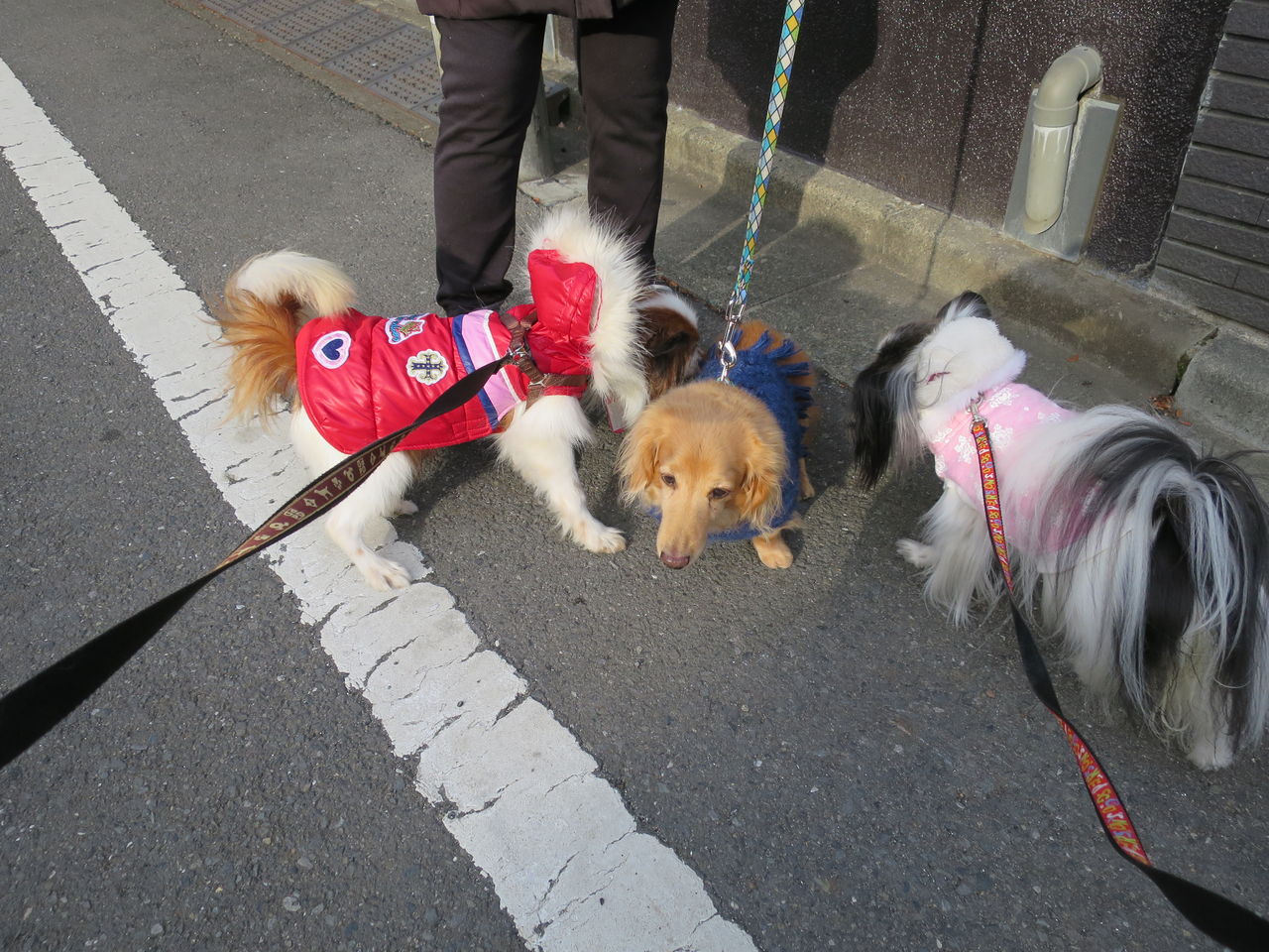 スムースのダックスさん達、アイドッグの仲間になったんだよね。きっと、ピッタリの暖か~い服があるよ。