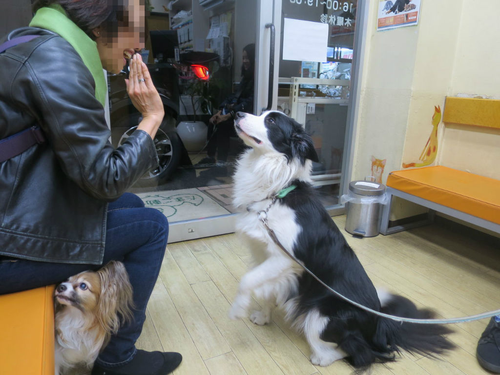 (通院時に: まだ一歳だそうですが、さすがボーダーコリー、お見事でした)