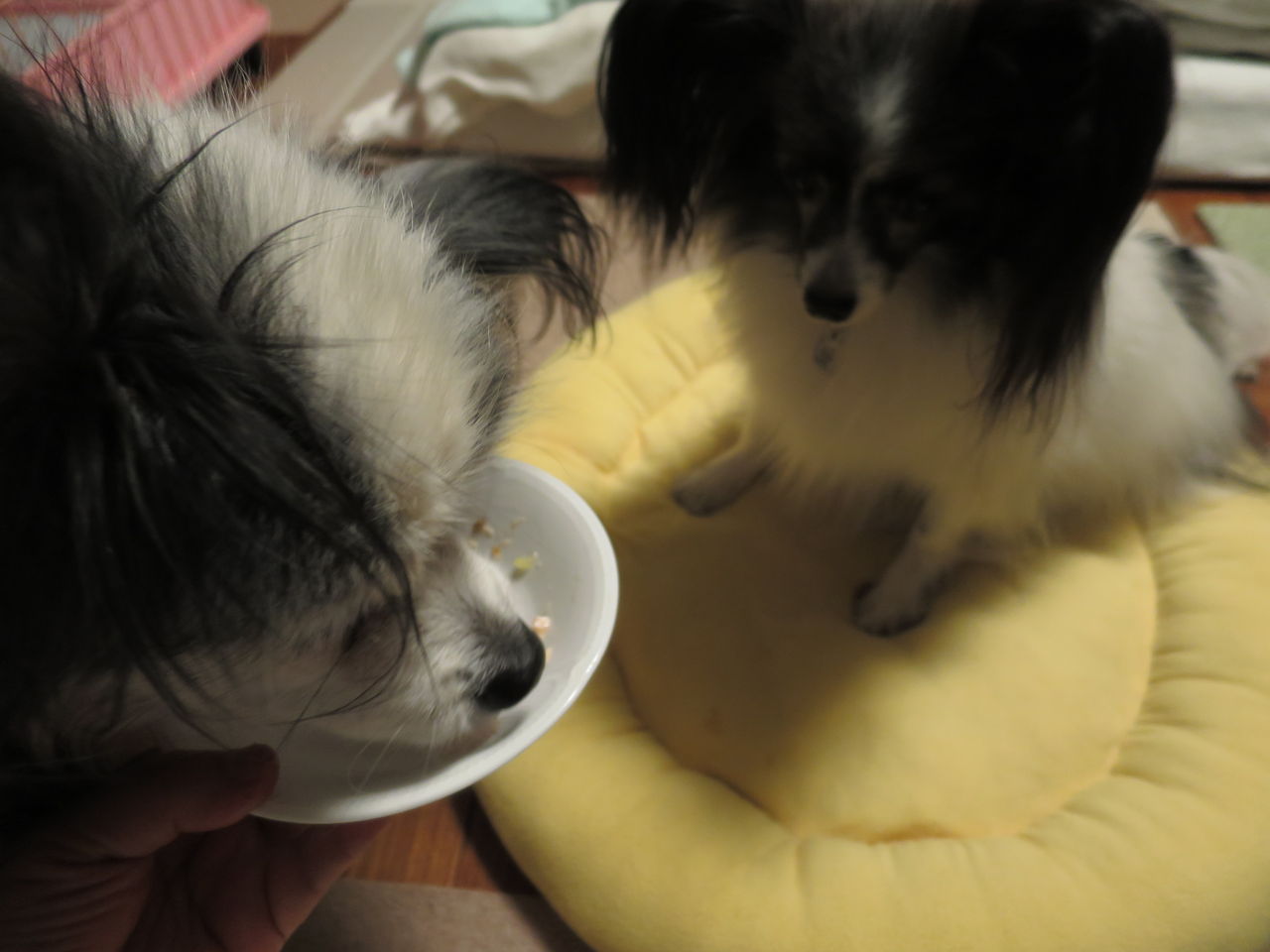 食べ物絡みでも先住犬の後に控える預かりっ子はお初です。