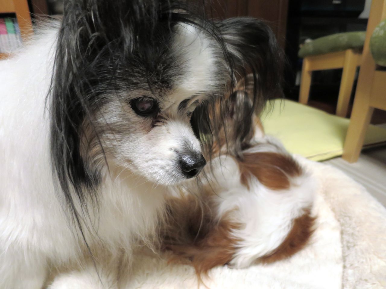 帰りの電車の中でも、パピヨンだらけの新しい仮家でも大人しい。