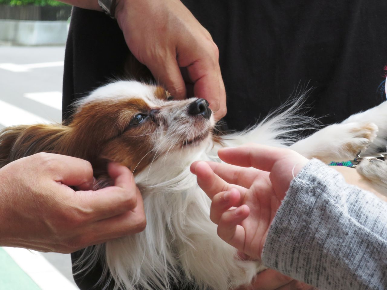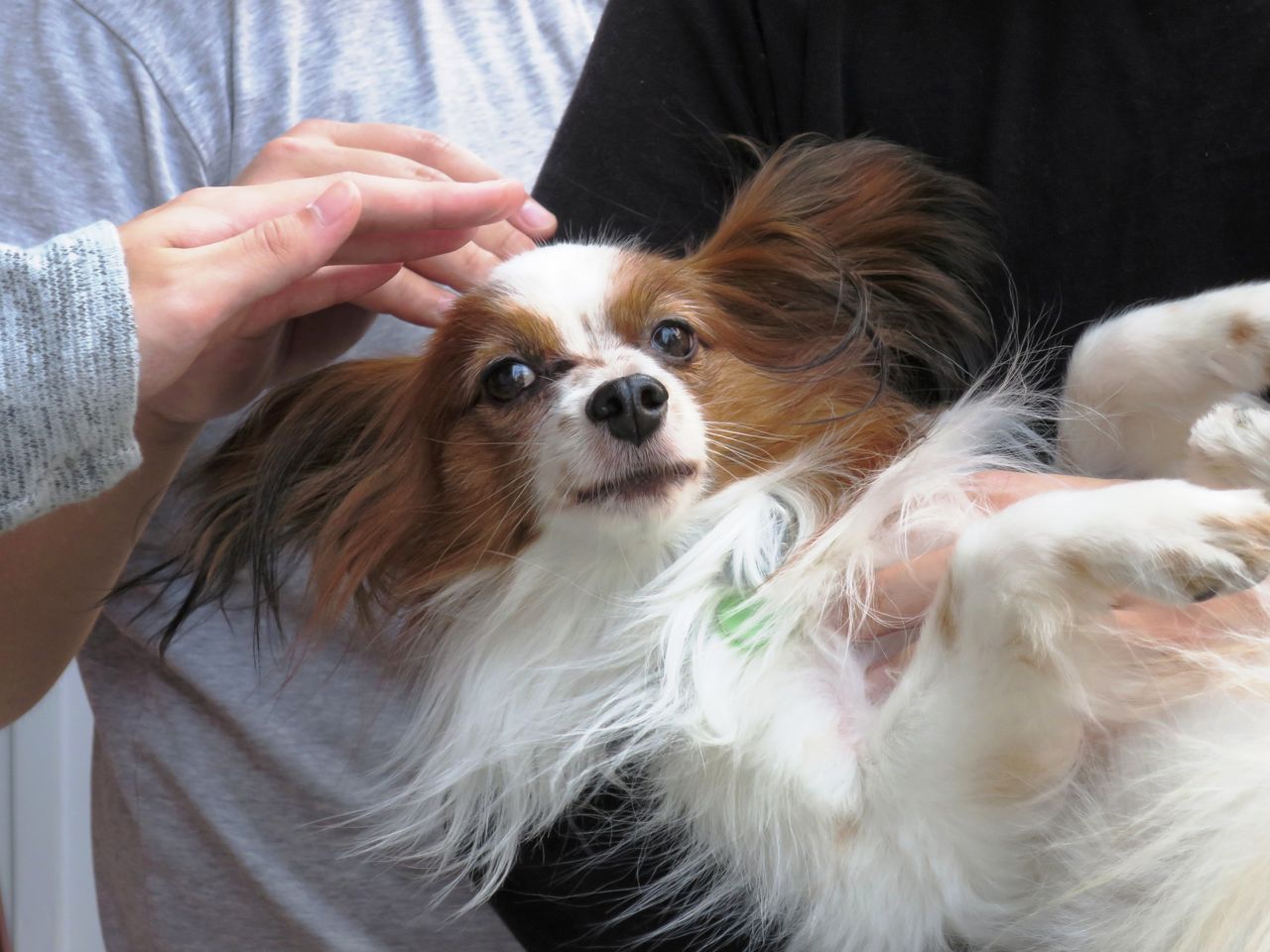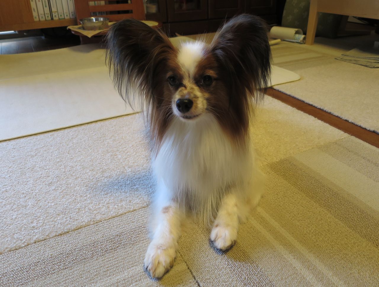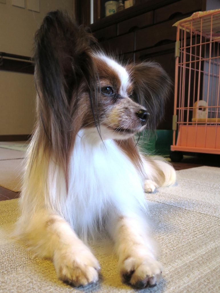 T: どお? パピヨンらしいお耳になってきたでしょ?里親会で綺麗になったボクに会って貰いたいもんね。