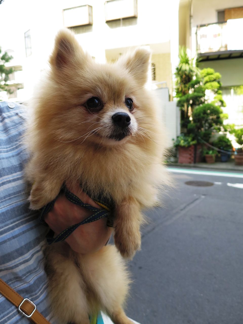 暑い位の昼過ぎにご近所パピのsoraちゃんとロング散歩。ロビンもカートで一緒に