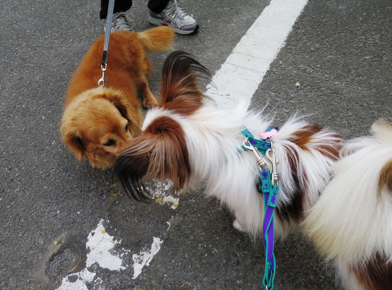 お散歩だって、問題無くワンちゃん達とご挨拶。