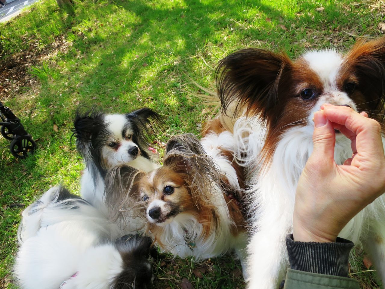 ミスティとティムの白茶パピヨン組の独壇場です。