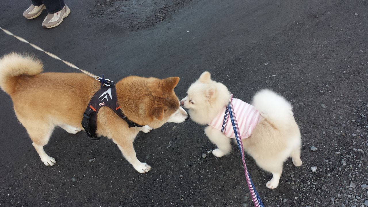 穏やかで、優しいミルク、お散歩も上手で、お友達にもご挨拶できました。