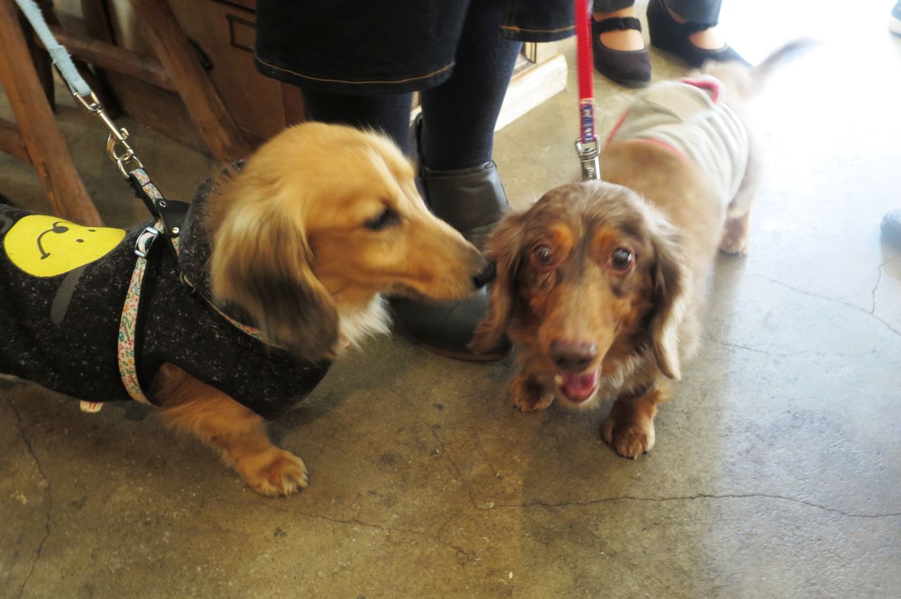 左、Mダックス・つむぐくんは、まめちこさん預かり(定石通り)