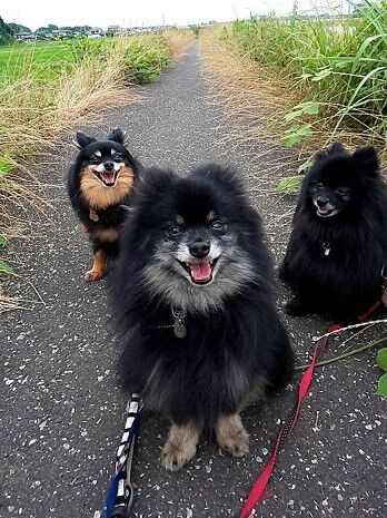 で公園散歩へ連れて行ってもらえる黒ポメ3兄妹。