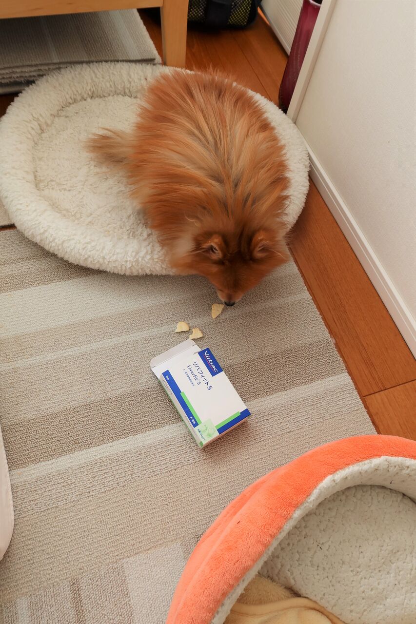 チャッピーが見つけて食べていたオヤツの箱を