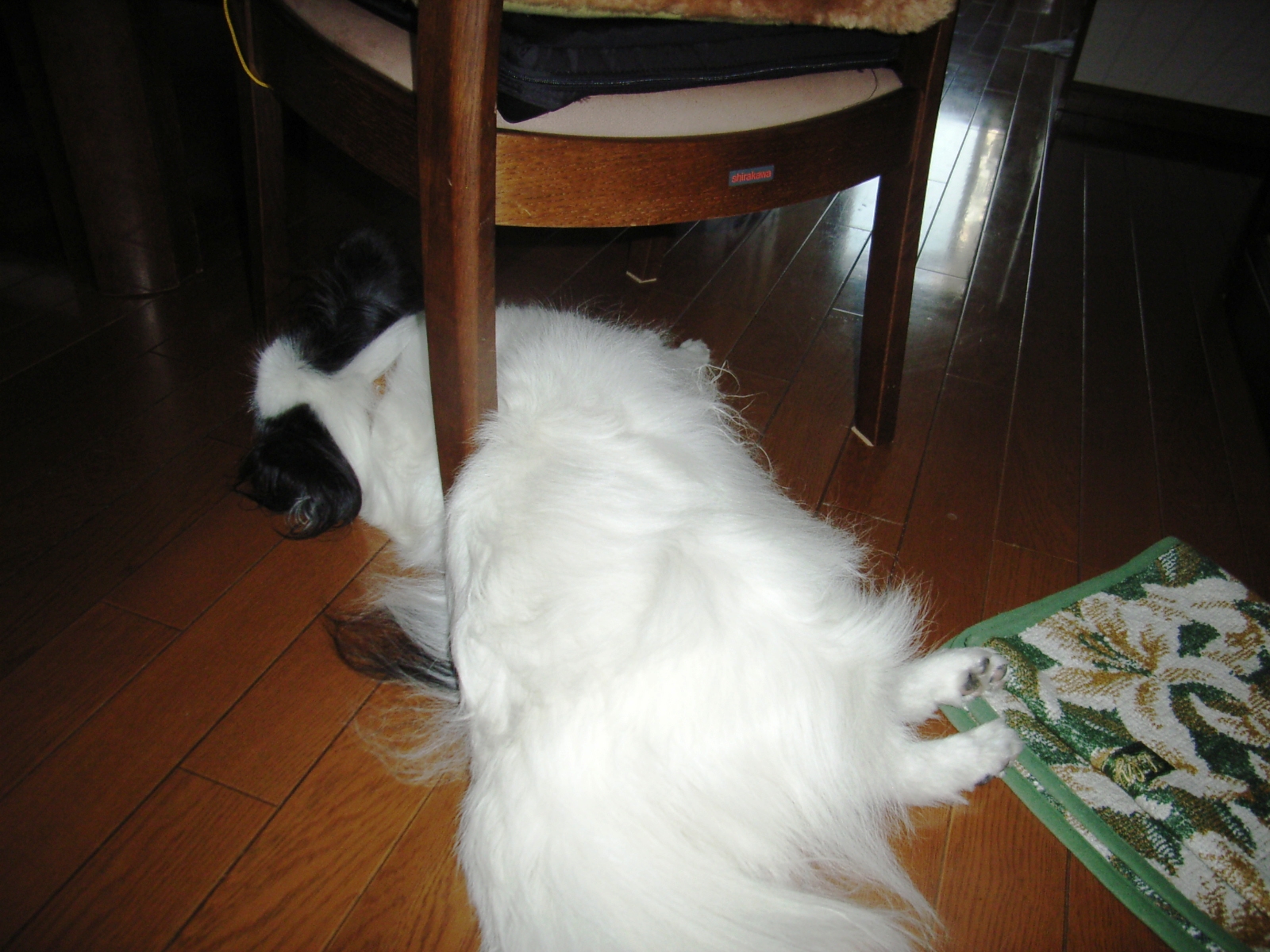 書類の説明など手続き業務の最中もアチコチ探検。 そして早速床にシィー