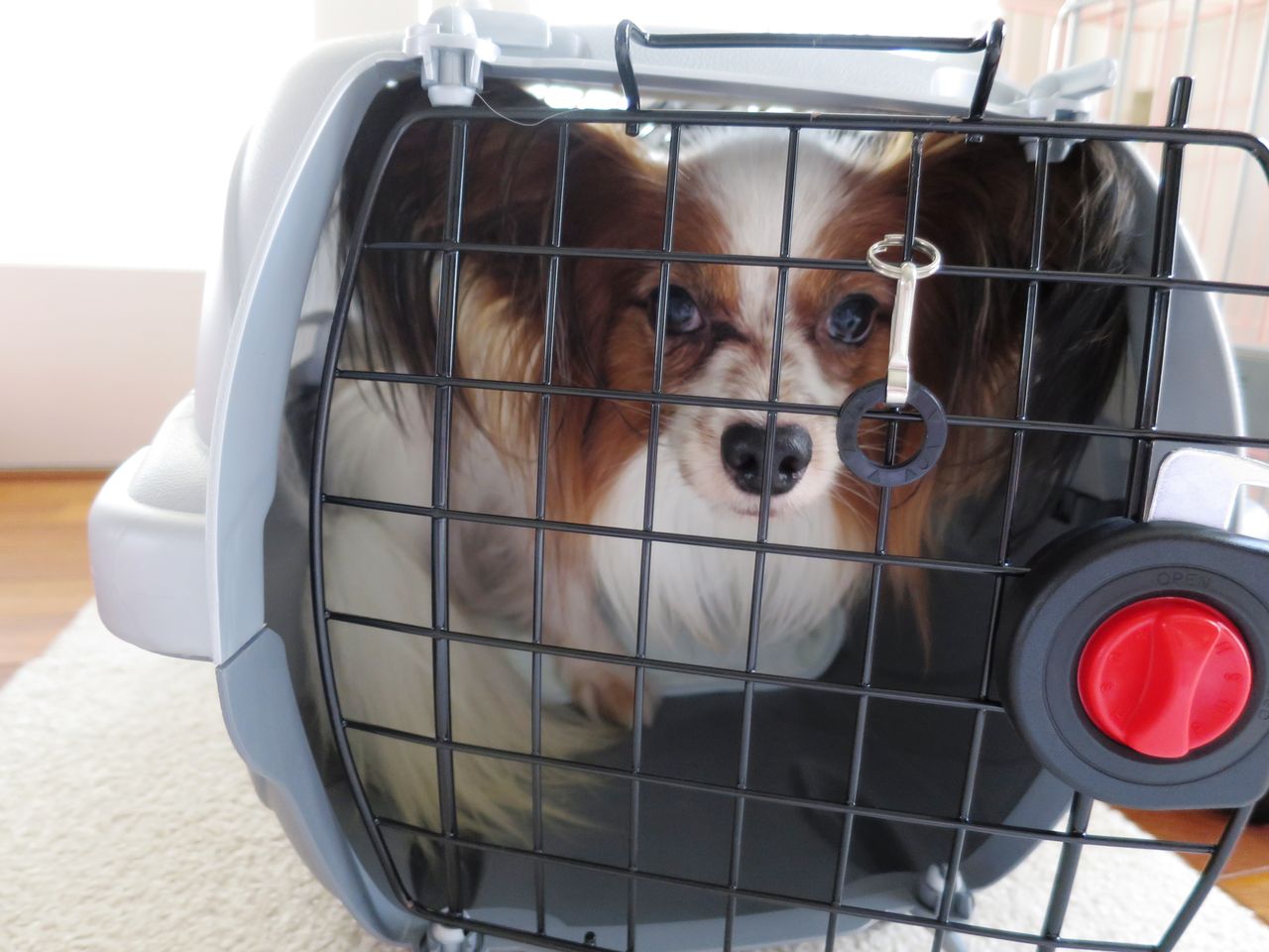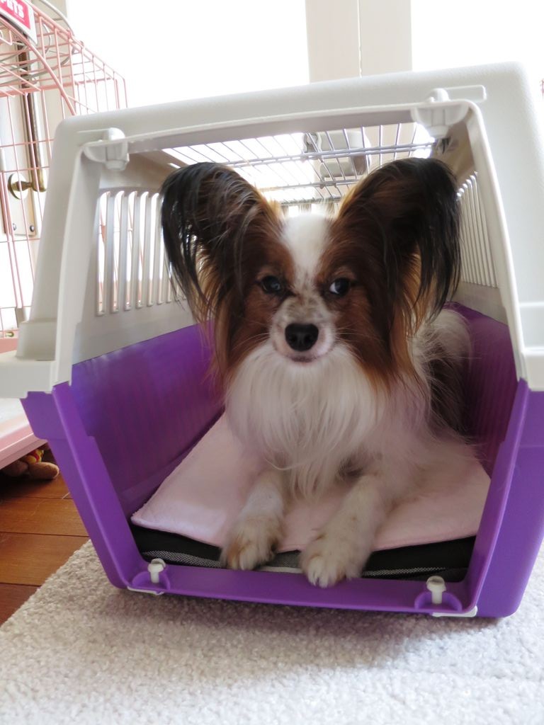 試しに、クレートに入って貰って様子見です。 ちょっと緊張。