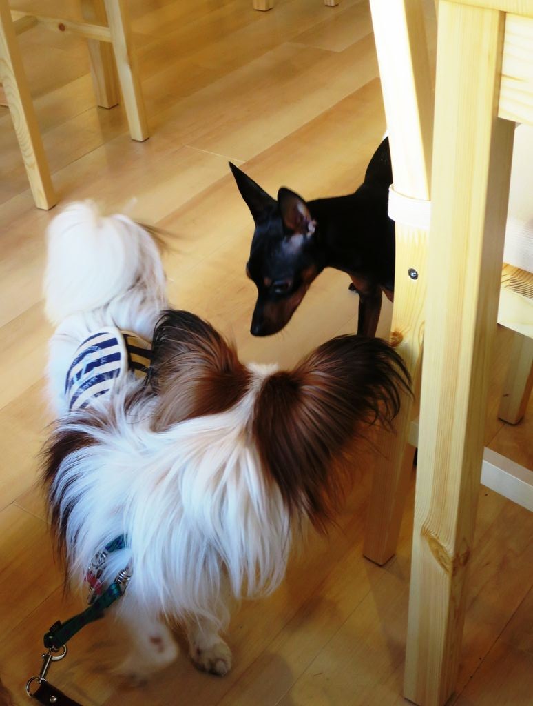 仮家ではパピ友のsoraちゃんや元預かりっ子のフィオとも空気の存在。