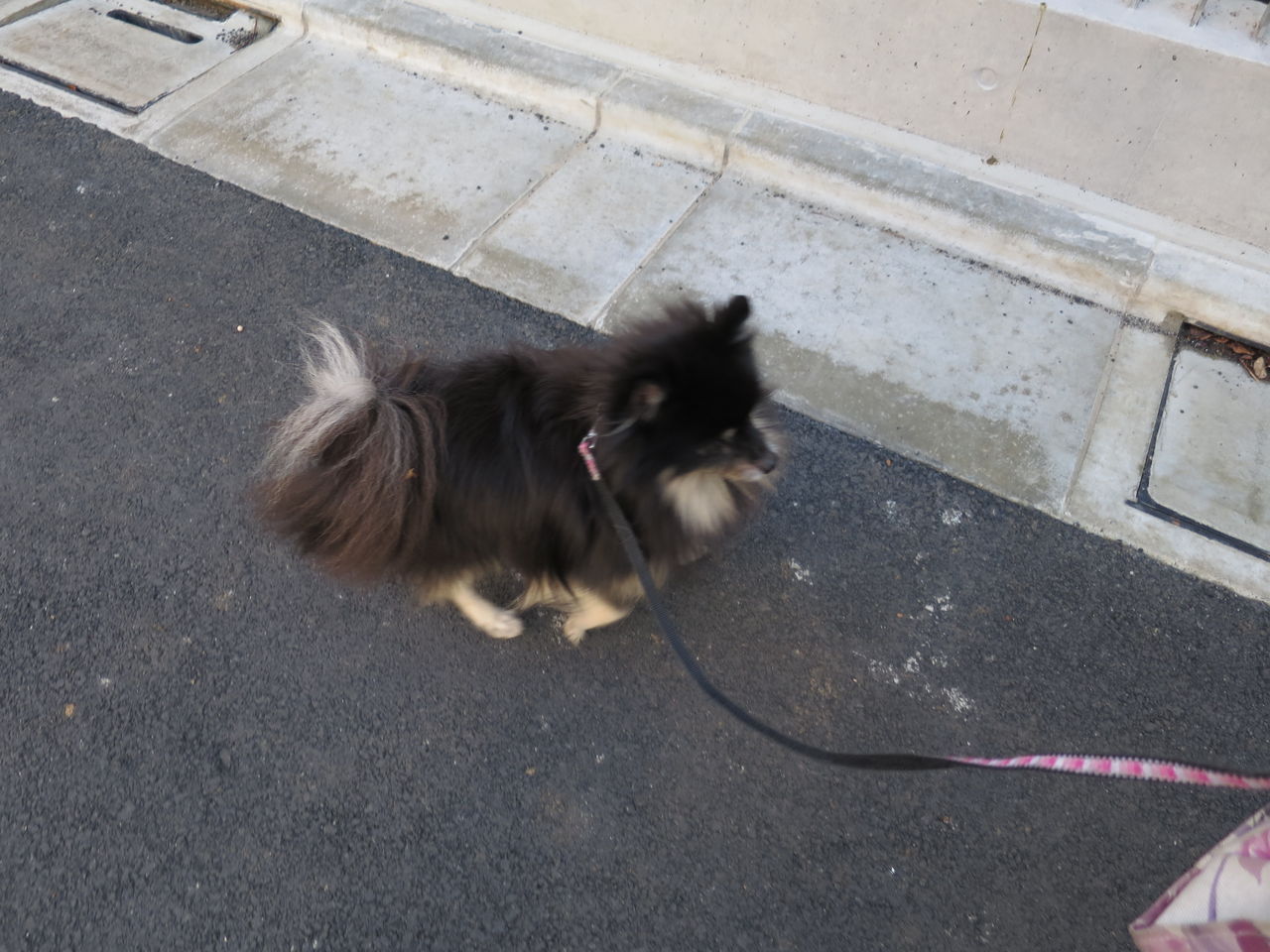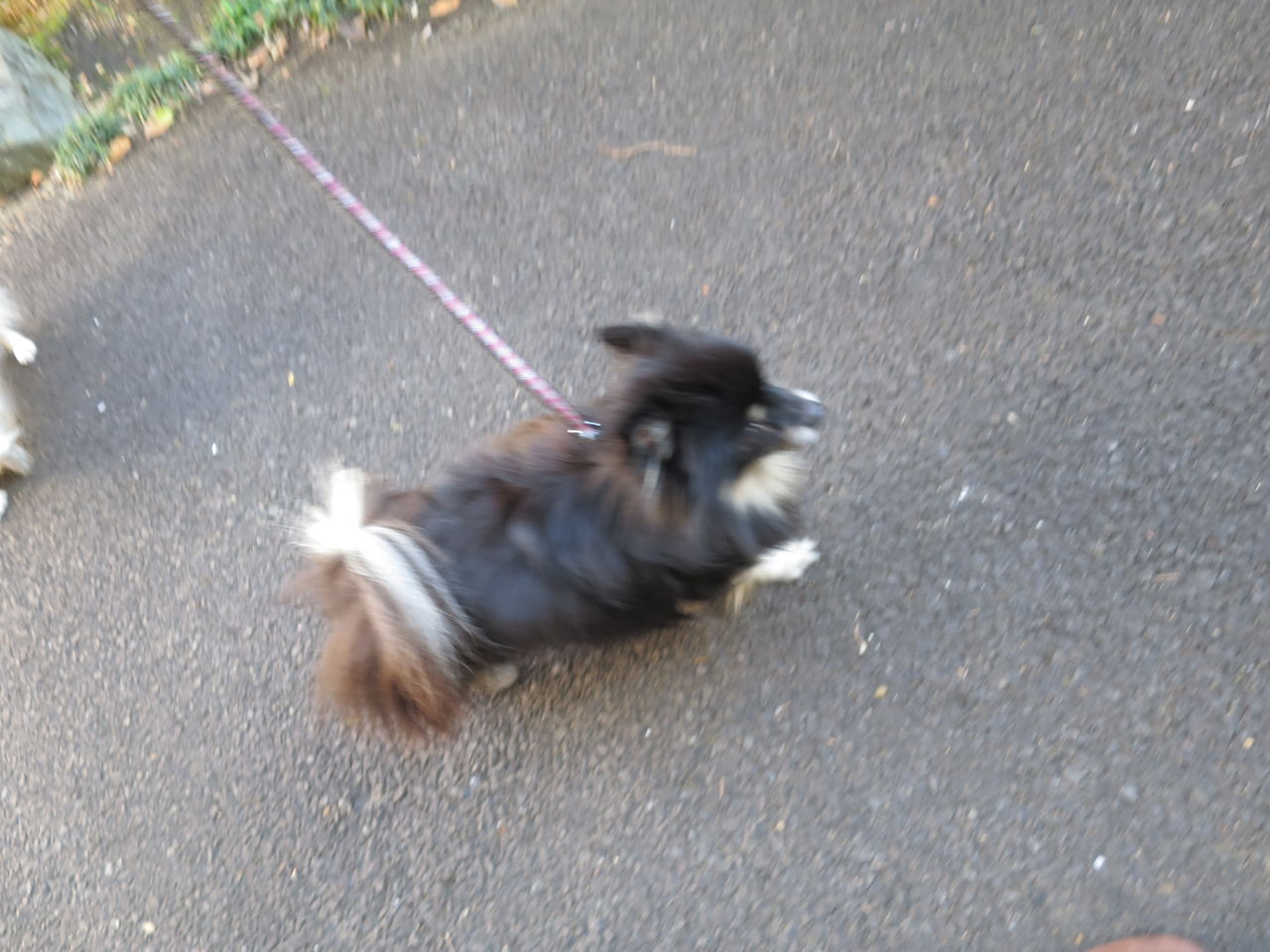 一しきり遊んだ後で、リードを付けて歩き回る。