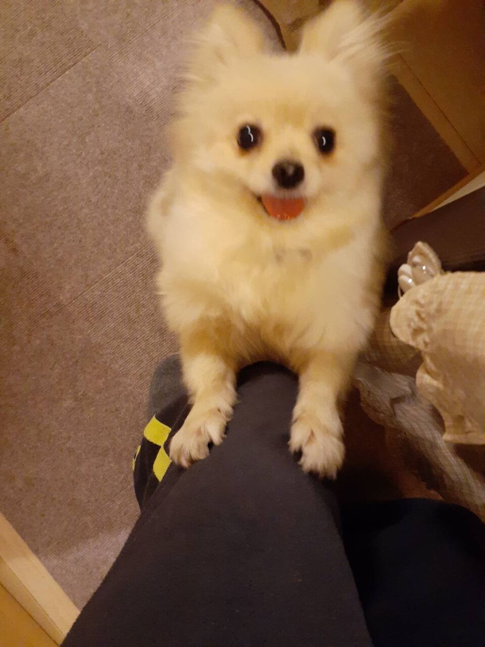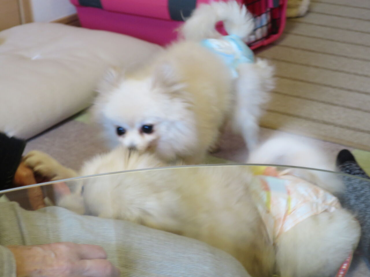 ややデカパピのティムは食べ物やお散歩用意に大興奮。
