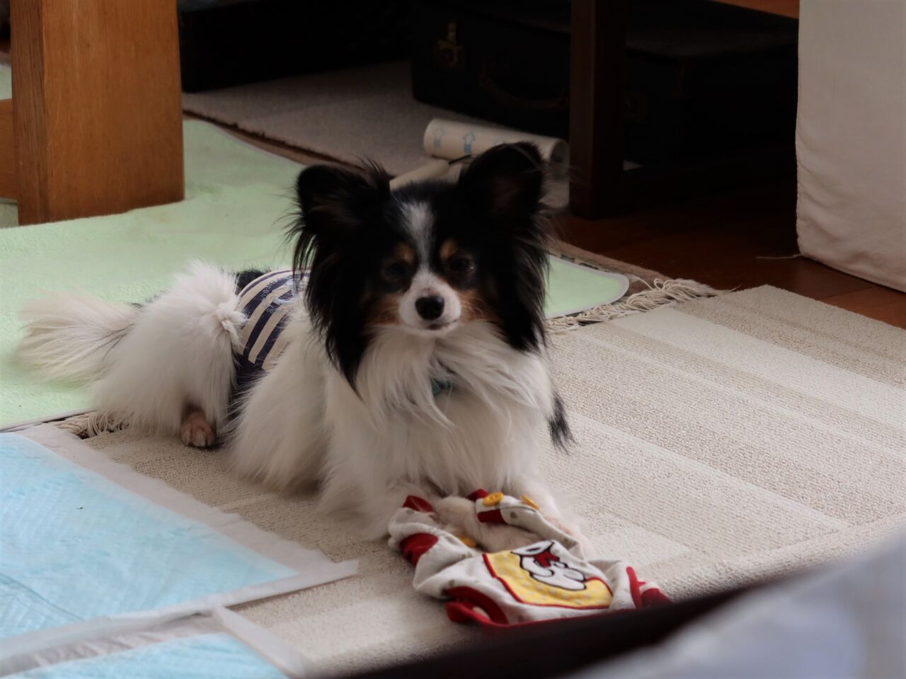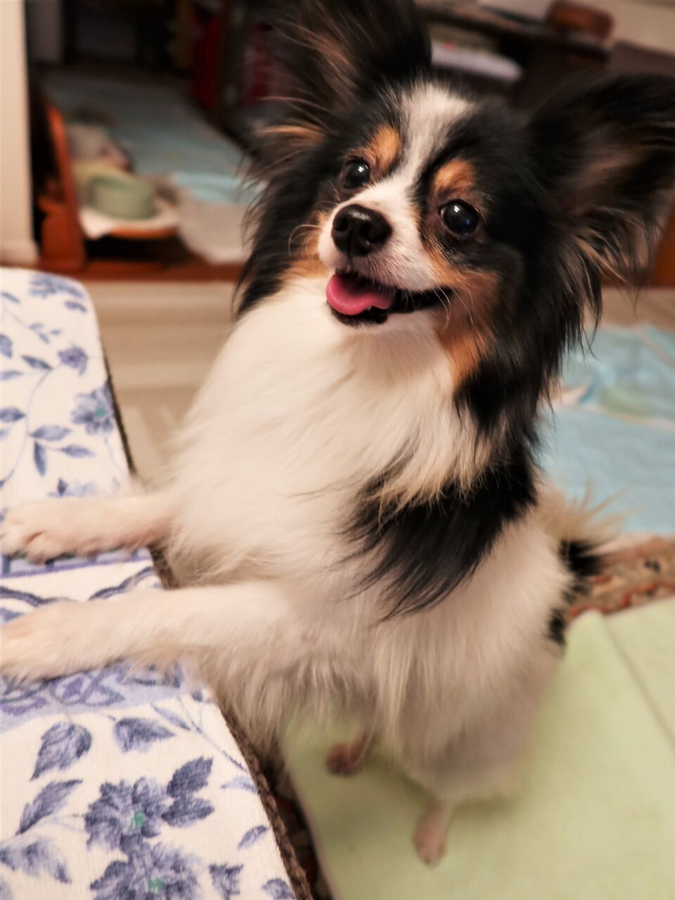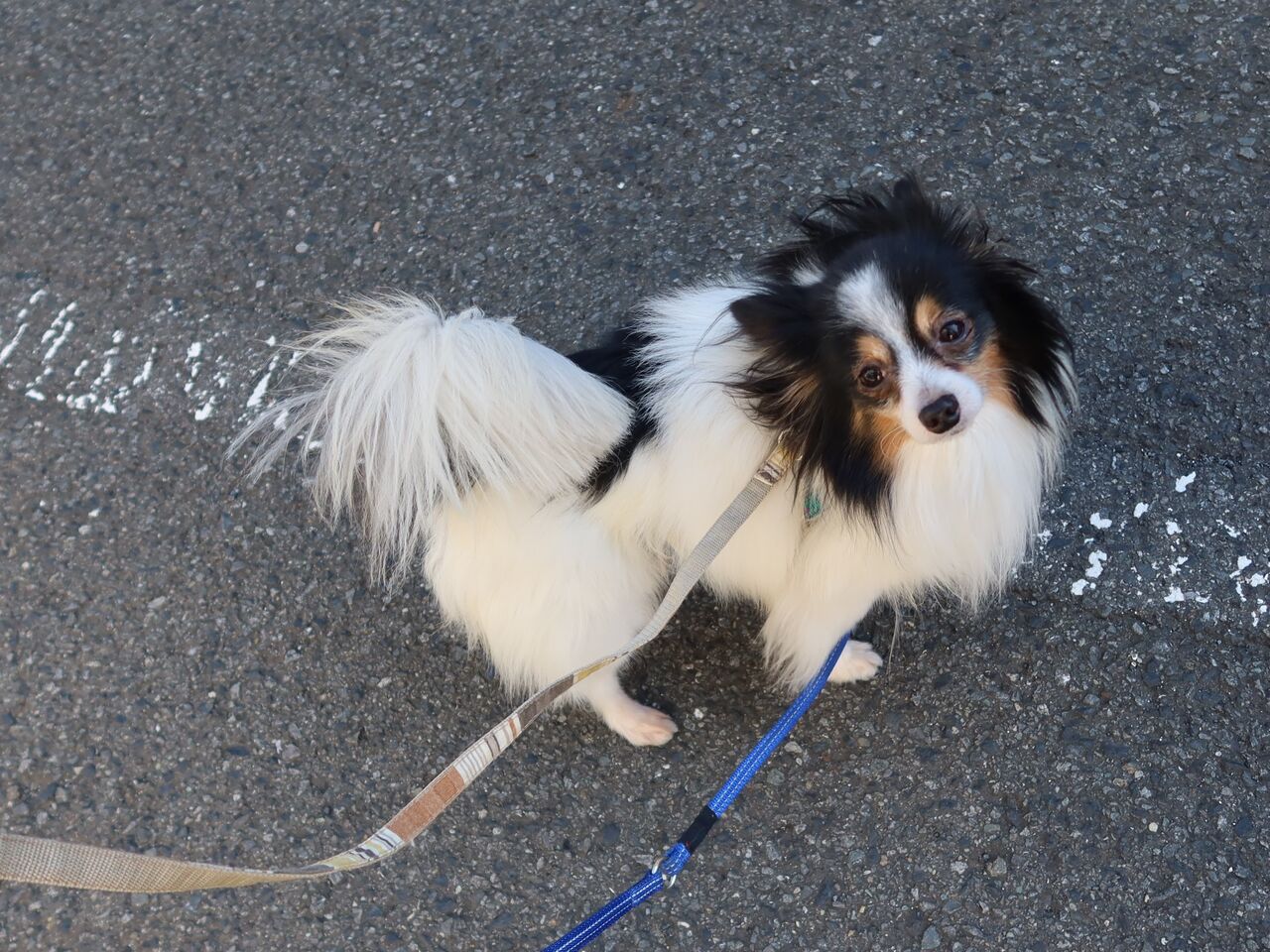 お見合い後にロビーで出会った白黒パピヨンさんとご挨拶。